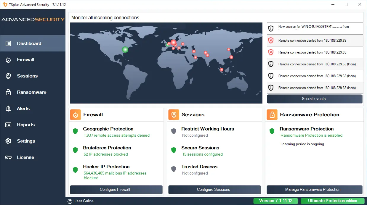 When you purchase TSplus Remote Access Enterprise Plus, TSplus Advanced Security is included.