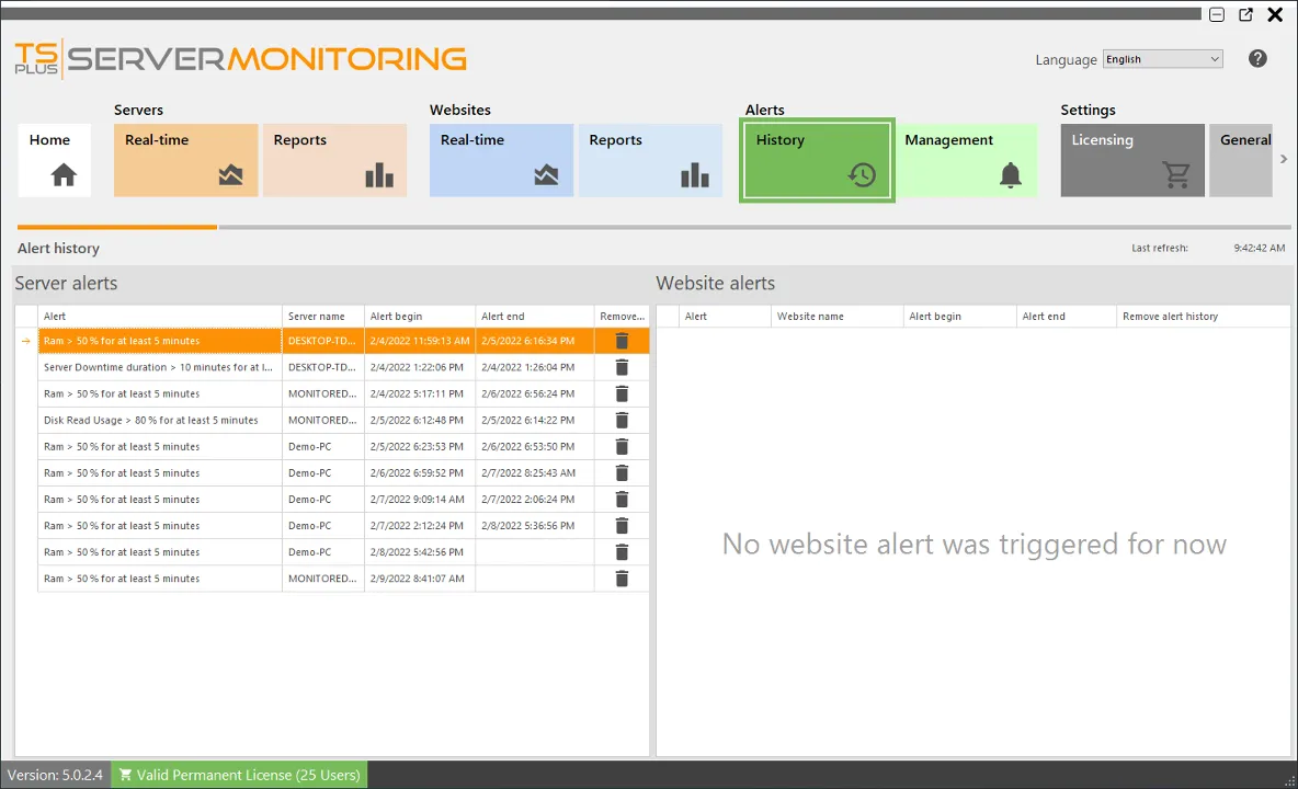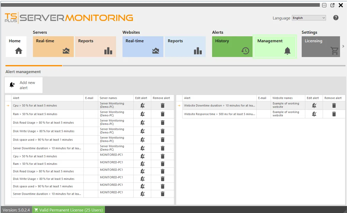 When buying licenses: Yes, your TSplus Server Monitoring licenses are permanent and will never expire. You can use them without any time limitation.